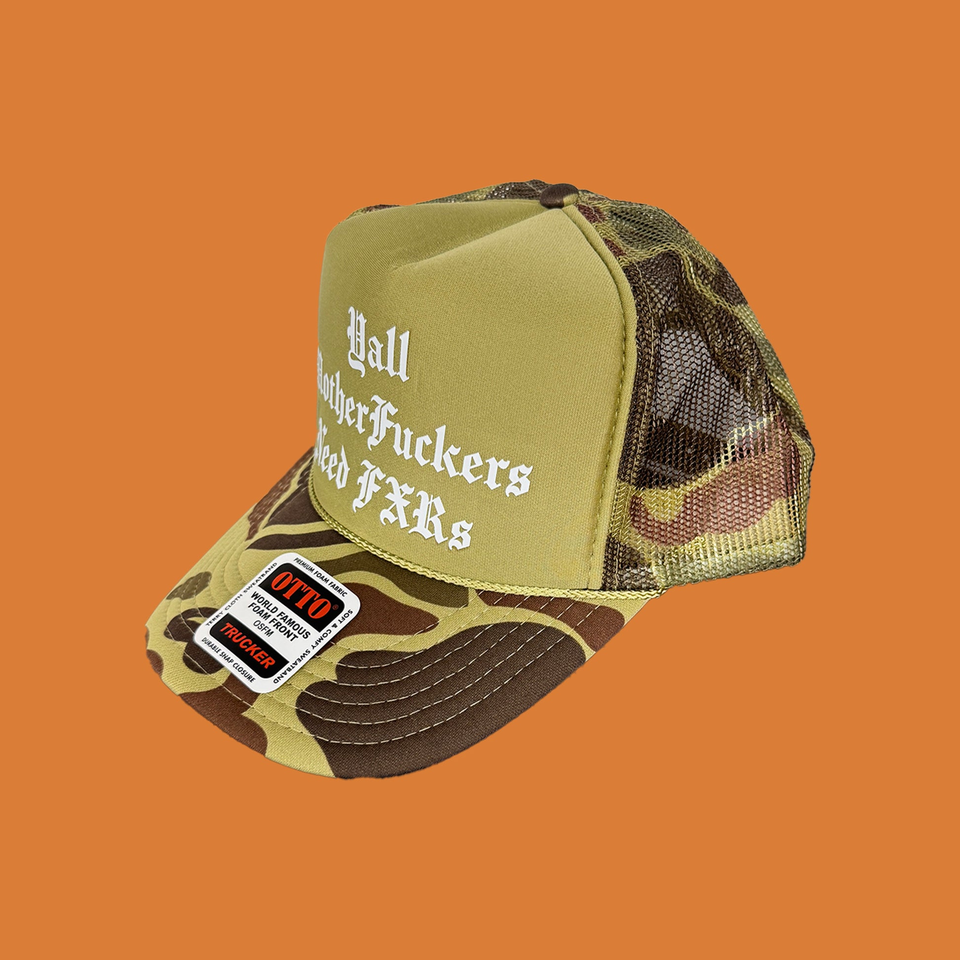 Truer words have never been spoken… This FXR Bazaar classic trucker hat features a heat transfer of the phrase "Y’all Motherfu**ers Need FXRs" on the front of a high-quality 5-panel OTTO-brand trucker hat.